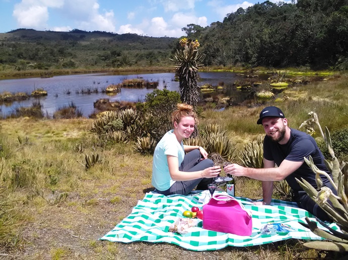 Belmira est un petit village perché sur les hauteurs de Medellin à environ une heure et demi du centre de la ville. La route qui y mène est complètement goudronné et on peut s’arrêter en montant pour faire du parapente et profiter de la hauteur pour avoir une des meilleures vues de Medellin et de la vallée d’Aburra. Le village est froid, très froid, car il est déjà à une altitude conséquente et en plus il est logé dans une petite vallée entourée de montagnes (le point le plus haut culmine à 3350m d’altitude), en journée c’est agréable si c’est ensoleillé mais la nuit si le ciel n’est pas couvert ça peut descendre à 6 degrés. L’église dans le parc est très jolie avec ses 2 clochers et les gens qui vivent principalement de la production laitière et de l’agriculture y sont très sympathiques et agréables. La spécialité locale est la truite car nous sommes en altitude ! Une tante et un tonton d’Alejandra possèdent une maison là-bas tout comme une bonne partie des frères et sœur du tonton, qui ont tous construit les uns à côtés des autres, le weekend tout le monde s’y réunit autour de la cuisinière extérieure centrale pour passer de bons moments ensemble à chanter, danser, manger… C’est ici que vous logerez et c’est le meilleur moyen de vraiment rencontrer les colombiens. Le principal attrait de Belmira est son paramo, appelé paramo de Santa Ines, ce sont des écosystèmes uniques des montagnes des Andes d’où naissent une grande partie des rivières de montagne et sous terraine, ce sont des usines d’eau mais sans qu’il y pleuvent nécessairement beaucoup. La végétation y est faite pour capter l’eau de l’air et la restituer dans le sol, la plante qui caractérise le plus les paramos est le frailejon, sorte de « cactus » poilu qui fleurit et qui ne croit que d’un a deux centimètres par an. La balade au paramo que nous faisons démarre de la maison familiale en passant par le parc principal du village (2550m) puis monte par des chemins de mule jusqu’au secteur de « savana » avec sa lagune et ses innombrables frailejones (3150m), depuis ce point on peut voir tous les sommets à 200kms à la ronde dont les glaciers du parc naturel national de los nevados dans la région du café mais uniquement si la vue est dégagée. Puis nous redescendons par une forêt de chênes et de bromélias bordée de nombreux ruisseaux puis par des champs de vaches jusqu’à arriver à une cascade toute proche de la maison où les plus courageux pourront se baigner (l’eau est à maximum 12 degrés), la randonnée fait 14kms et dure environ 5/6h à un rythme ni rapide ni lent, on peut choisir de picniquer sur place ou de manger au parc ou la maison en arrivant suivant l’heure de départ souhaitée. Nous proposons aussi une version plus longue de 20kms qui monte jusqu’au point le plus haut, au refuge, à 3350m d’altitude, nous démarrons tôt pour pouvoir le faire dans la journée sans dormir là haut.