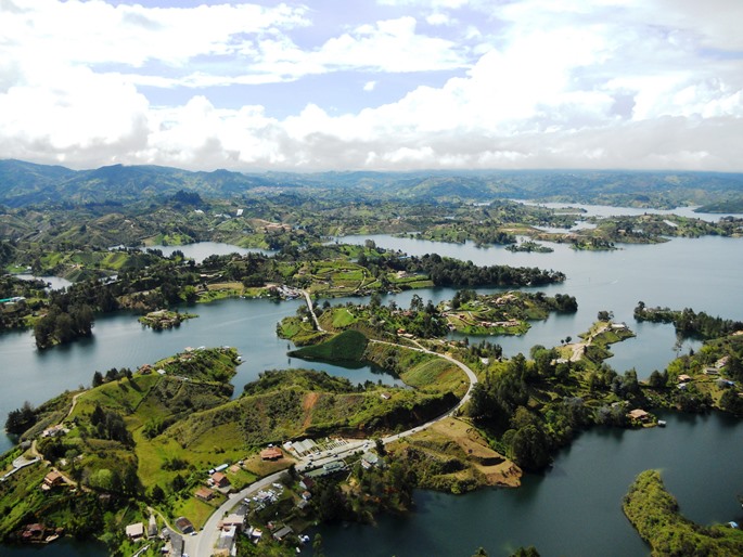 Ahora hablemos de esta famosa “Piedra del Peñol” o “Peñón de Guatapé” porque se encuentra precisamente en la frontera entre los dos pueblos (antes de sumergir el antiguo pueblo de Peñol bajo el agua, se reconstruyó un nuevo Peñol más arriba), a unos pocos kilómetros antes de Guatapé cuando uno viene de Medellín, los 2 pueblos se han estado peleando por la propiedad de esta piedra durante muchos años… Es una roca enorme y redondeada, como un monolito gigante de 220 m de altura, plantada allí en medio del lago artificial, una curiosidad geológica que era un antiguo lugar sagrado para los indios Tahamy que vivían en Antioquia cuando llegaron los colonos españoles. Para llegar a su cima y disfrutar de una de las vistas más hermosas que podrá ver en Colombia con esta agua azul turquesa que da forma a todas estas pequeñas islas, tendrá que subir las 700 escalas que conducen a ella. Si eres amante de la escalada, puedes, desde hace poco, llegar a la cima por la pared de roca, pero está reservado para practicantes experimentados y, finalmente, si no eres muy deportivo y tu billetera te lo permite usted podrá optar por un vuelo de diez minutos en helicóptero… En  esta región también podemos hacer canyoning y parapente, ¡pero para nosotros no es el mejor lugar para hacerlo! También podemos pescar en la represa, a priori hay hermosos ejemplares para pescar.