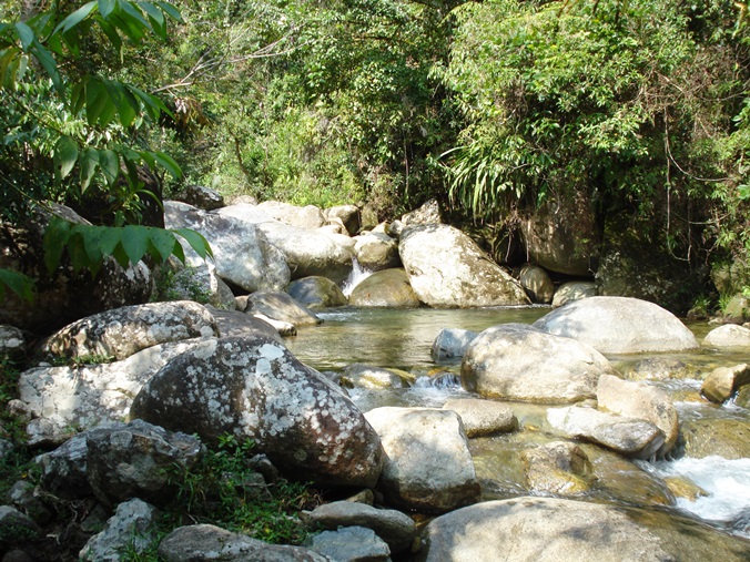 On arrive à San Rafael après 30 minutes d’une route en pure descente depuis Guatapé et San Carlos encore 45 minutes plus loin par une route plate. Ces deux villages étaient encore en 2012 aux mains de la guérilla qui s’y battait avec les paramilitaires et l’armée nationale, un monument au souvenir en plein centre du parc principal de San Carlos témoigne de ce douloureux passé. Ce qui nous attire dans ce secteur ce n’est pas les villages en tant que tel mais L’EAU, en effet il y’a d’innombrables rivières d’eau cristalline et de belles cascades à travers cette jungle préservée terrain de jeu des ouistitis et des toucans, la basse altitude fait que le changement de température et de végétation est radical quand on vient de Guatapé. Pour les fans d’activités aquatiques comme le canyoning et le tubing (descente de rivière en chambre à air de camion avec néoprène, gilet de sauvetage et casque) c’est le terrain de jeu idéal. En France nous étions adeptes de canyoning (Alpes, Corse, Jura…) et celui du Chispero à San Carlos est sans doute le plus beau qu’il nous a été donné de faire, varié avec des rappels, des sauts, des tobbogans naturels c’est une journée de pur bonheur ! Le tubing nous ne connaissions pas avant notre arrivée en Colombie mais c’est une activité vraiment amusante et très bon marché, il y’en a pour tous les goûts, de la rivière plutôt plate avec quelques petits rapides à la rivière agitée pour un 100% eaux blanches en passant par une rivière entre les deux… Il est possible d’organiser des descentes en kayak mais c’est avec des entreprises de Medellin qui ne sont pas surplace, c’est assez cher et une expérience préalable est demandée, nous privilégions donc les petites entreprises locales qui font avec leurs moyens sans pour autant délaisser la sécurité. Pour ceux qui ne sont pas attirés par ce genre d’activité on peut venir dans le secteur juste pour se balader dans la jungle, observer la faune et se baigner dans les innombrables piscines naturelles d’eau cristalline ou juste pour profiter des nombreux magnifiques ecolodge en pleine nature qui ont fleuri dans le secteur durant les dernières années, il y’a également un des plus grands temples de yoga de Colombie ou l’on peut pratiquer ou juste dormir dans un cadre magnifique à côté d’une rivière. Une belle balade peut vous conduire au sommet de la Piedra del Tabor à 1850m d’altitude, le départ de la randonnée est à 1000m donc ça fait tout de même un bon dénivelé positif à grimper mais la vue magnifique en vaut vraiment la peine, c’est environ 4h aller-retour depuis San Carlos.